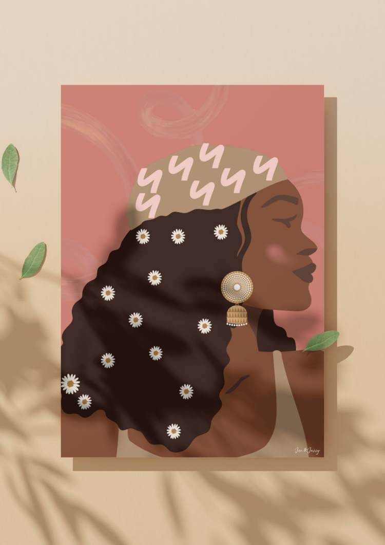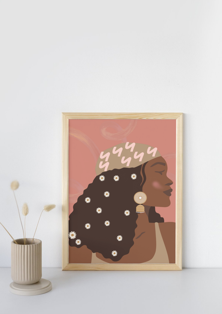 Bring a sense of calm and beauty into your bedroom or meditation space with this enchanting floral art print. Featuring soft pinks, browns, and white daisies against a warm background, this artwork captures a peaceful, dreamy atmosphere. Ideal for a cozy nook, a thoughtful gift for a loved one, or a collector’s item, it adds a touch of grace and tranquility wherever it’s placed. Printed on premium heavyweight, semi-gloss 200 gsm paper with a silk finish, available in A4, A3, and A2 sizes, ready to frame and enjoy for years.